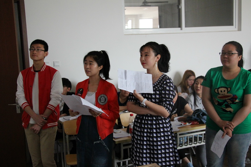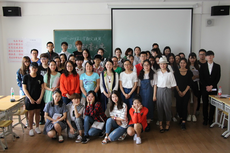 由日语教师现场打分,在每个班级分别选出二组比较好的小组,参加第二天的配音比赛。