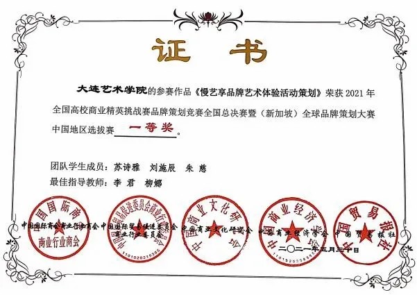 我很荣幸《海就是嗨!品牌策划方案》可以在全国高校商业精英挑战赛品牌策划竞赛全国总决赛中获得一等奖。感谢学校和老师们对我们的培养,让我们在比赛中收获与成长,不断提升我们的专业能力与水平,让我们对专业有了更清晰的认知,这次大赛让我收获满满,我会继续努力,取得更好的成绩。